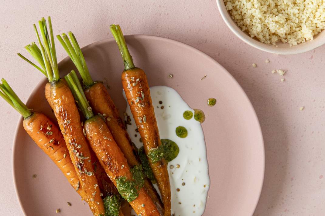 Geschmorte Karotten mit Karottenkraut-Pesto